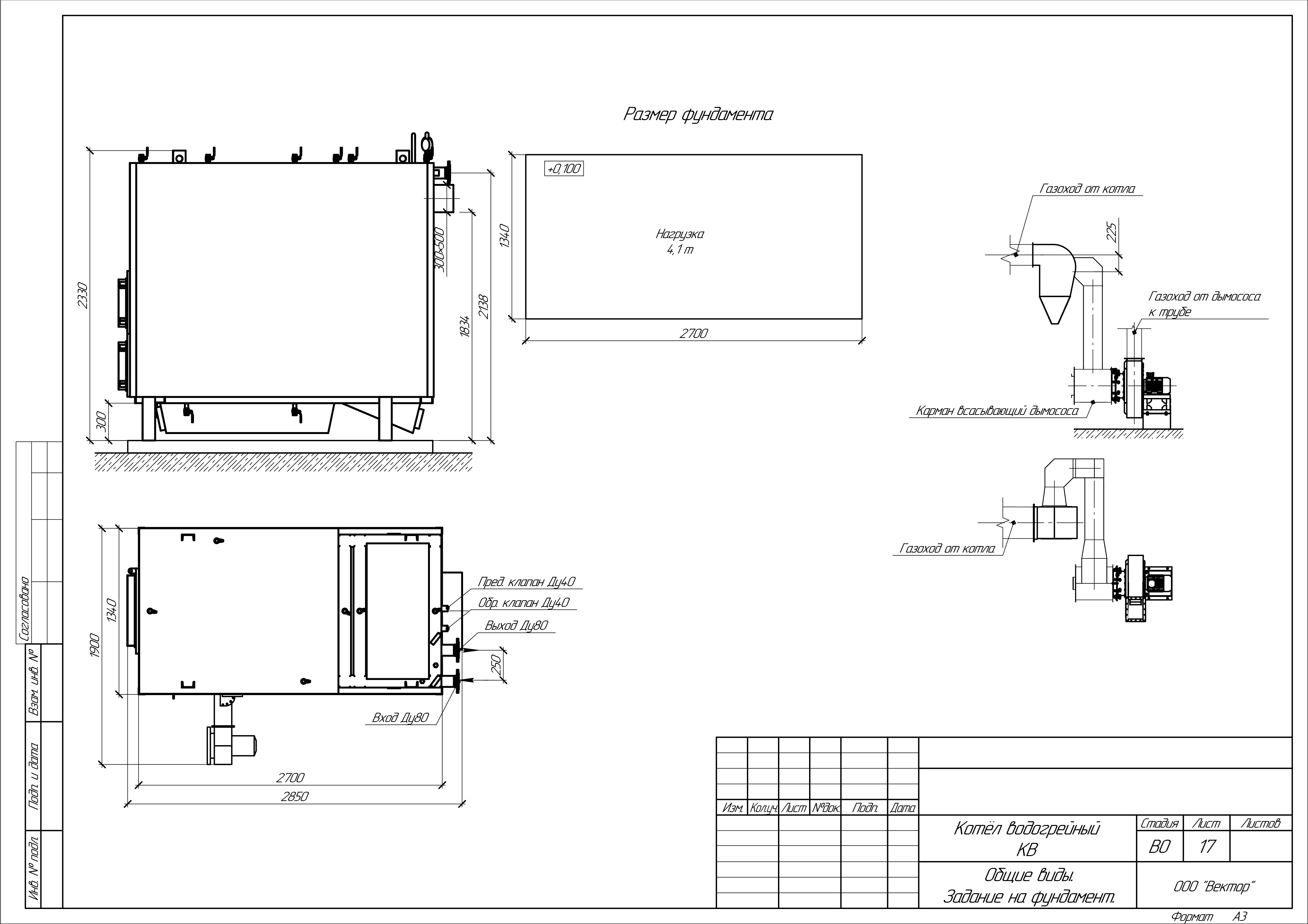 Масса котла (без воды): 4700 кг